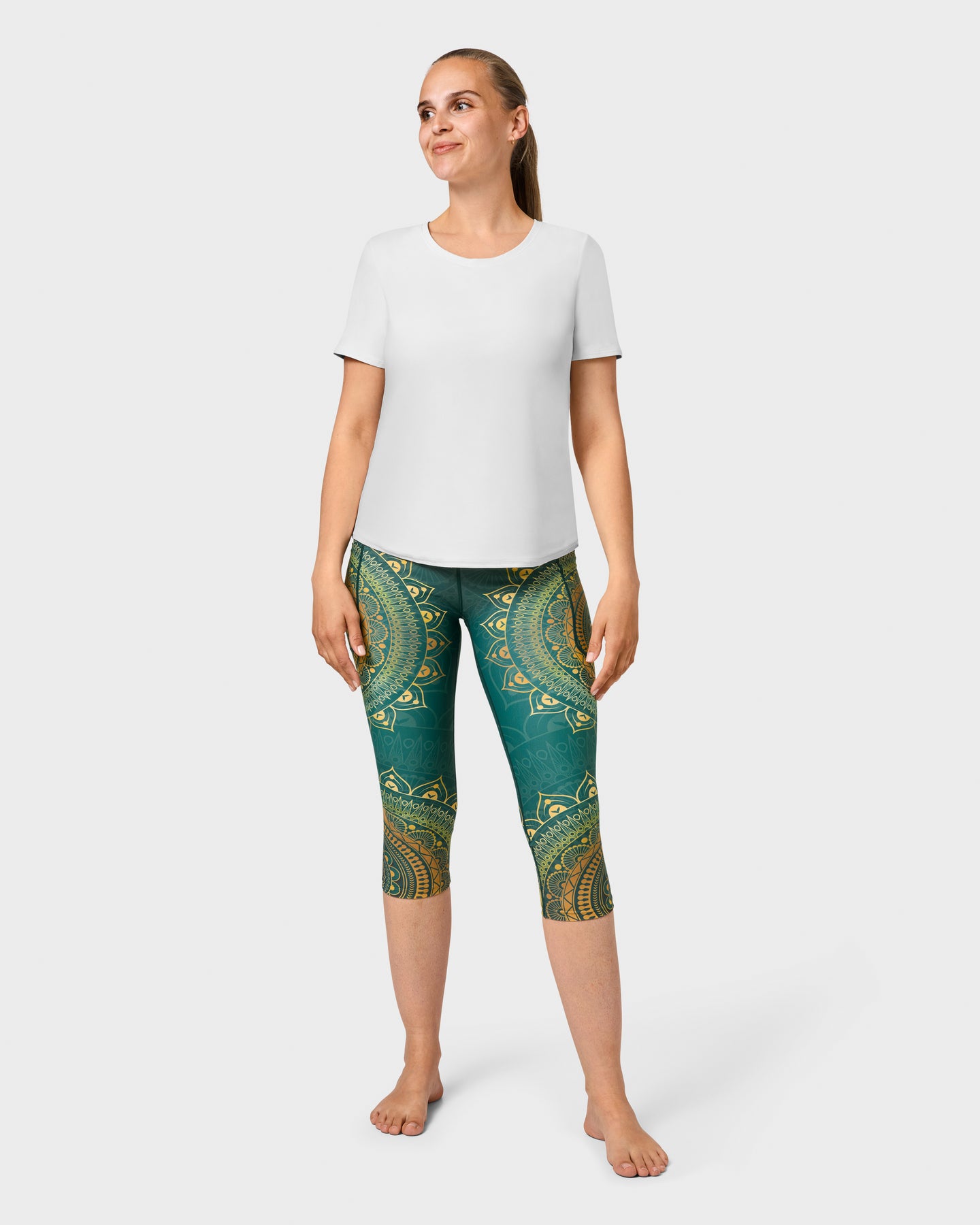 Capribukser er en kortere versjon av leggings, og passer derfor perfekt til vår og sommer. Våre korte tights har en bred, høy midje med en tynn strikk som sørger for at de holder seg på plass når du beveger deg. Det myke stoffet kan strekkes uten at det mister sin vakre farge, og både passform og mykhet bevares vask etter vask.