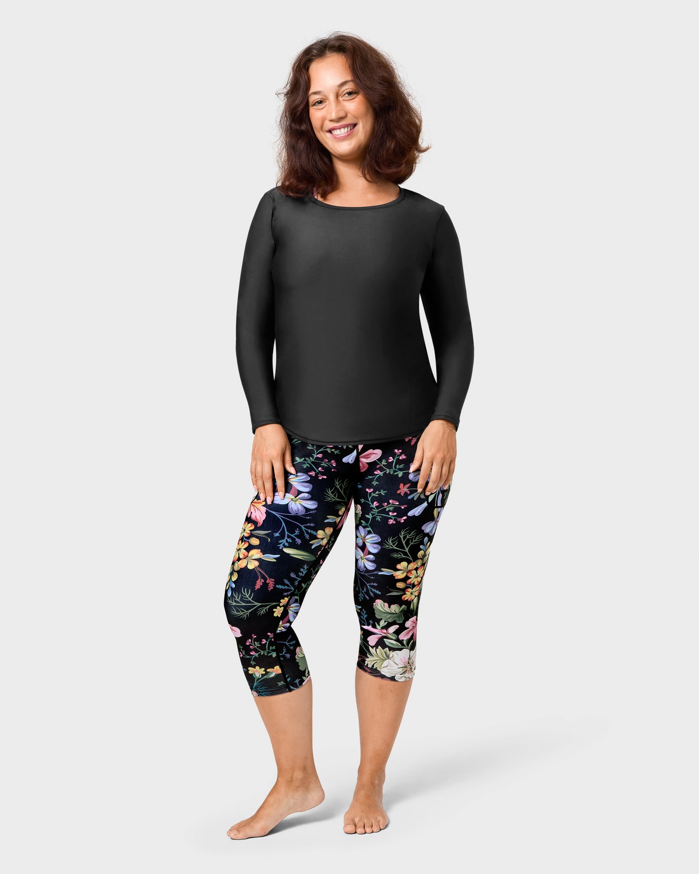 Capribukser er en kortere versjon av leggings, og passer derfor perfekt til vår og sommer. Våre korte tights har en bred, høy midje med en tynn strikk som sørger for at de holder seg på plass når du beveger deg. Det myke stoffet kan strekkes uten at det mister sin vakre farge, og både passform og mykhet bevares vask etter vask.