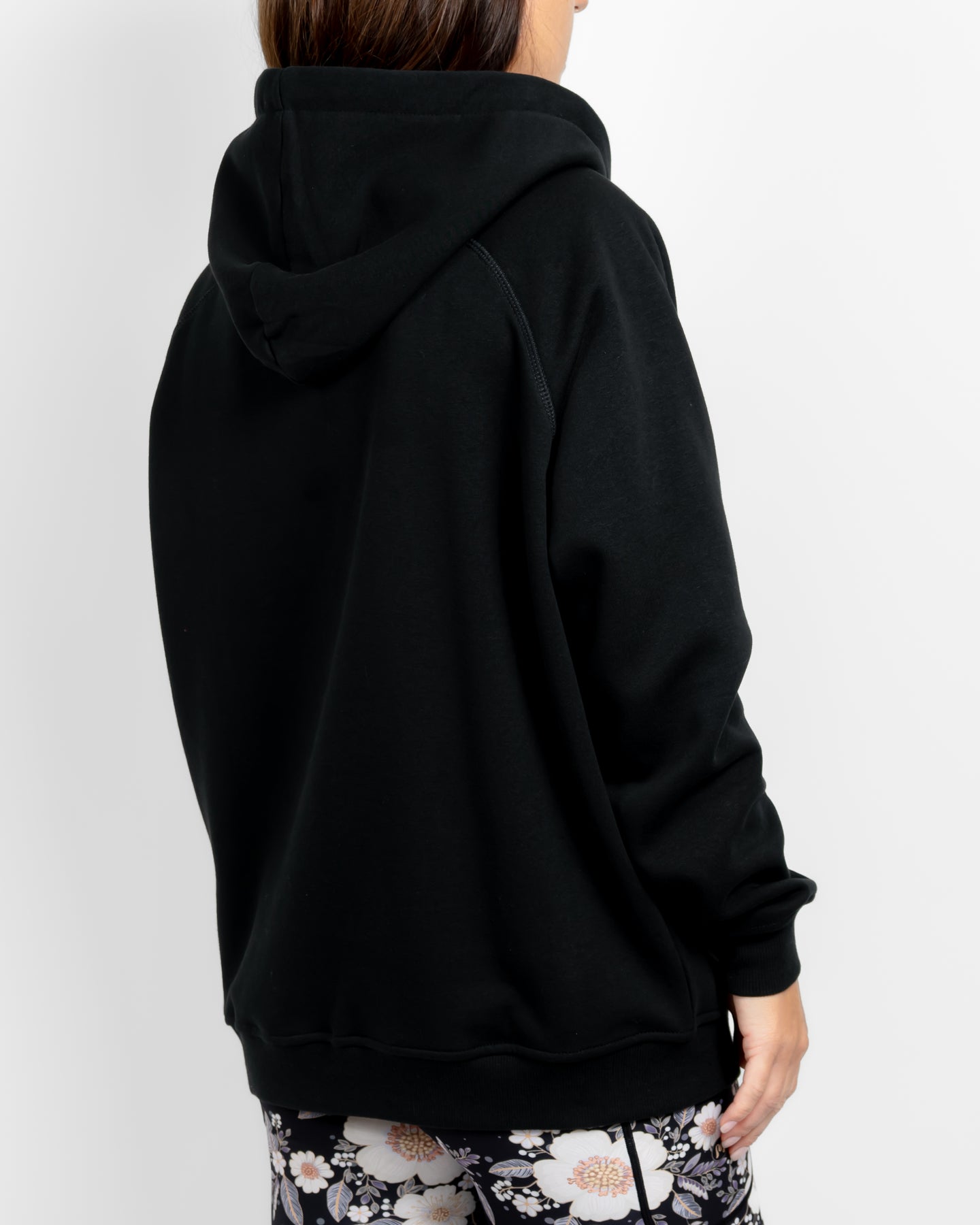 Passformen er romslig og behagelig, som gir deg god bevegelsesfrihet. Hetten er praktisk og gir et avslappet utseende, mens de gjennomførte detaljene fullfører et stilrent design som er lett å style med både jeans og leggings.