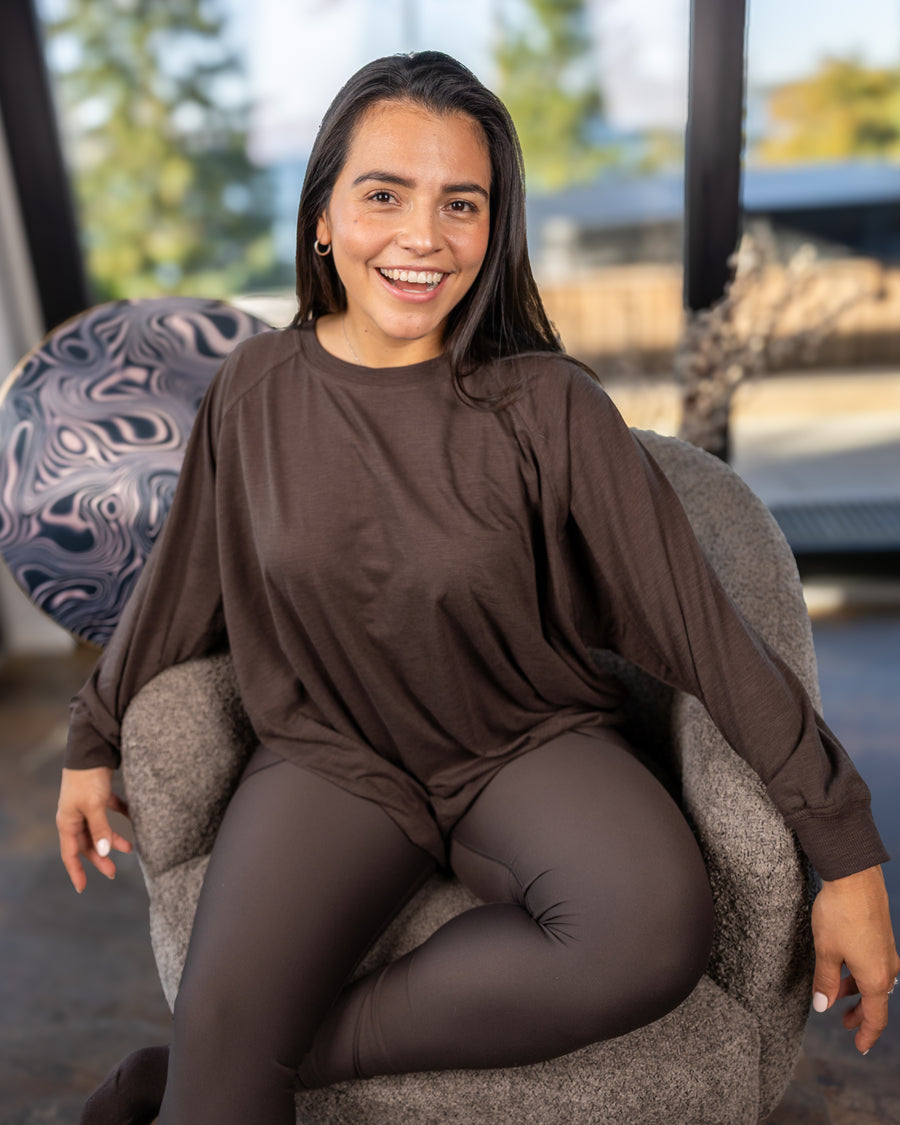 Den børstede innsiden gir maksimal komfort, mens det kraftigere stoffet holder deg varm på kalde dager – uten å føles tungt. Til tross for den tykkere kvaliteten får du fortsatt god bevegelsesfrihet og en naturlig passform