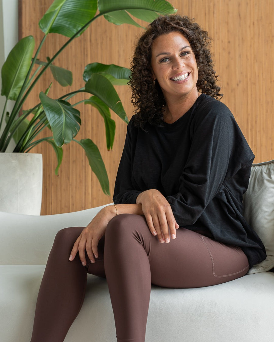 Leggings med høy midje i silkemykt, stretchy stoff – perfekt passform i alle størrelser. De har lommer, holder seg på plass når du beveger deg og er helt squat-proof.