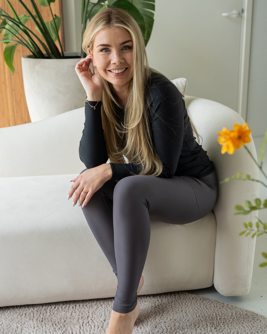 Leggings med høy midje i silkemykt, stretchy stoff – perfekt passform i alle størrelser. De har lommer, holder seg på plass når du beveger deg og er helt squat-proof.