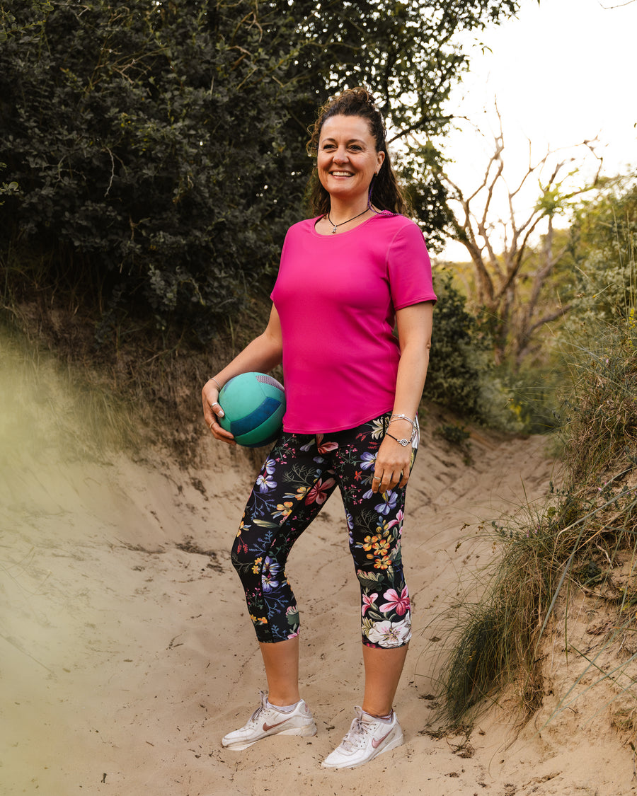 Capribukser med høy midje i silkemykt, stretchy stoff. Perfekt passform i alle størrelser, sidelommer og helt squat-proof.