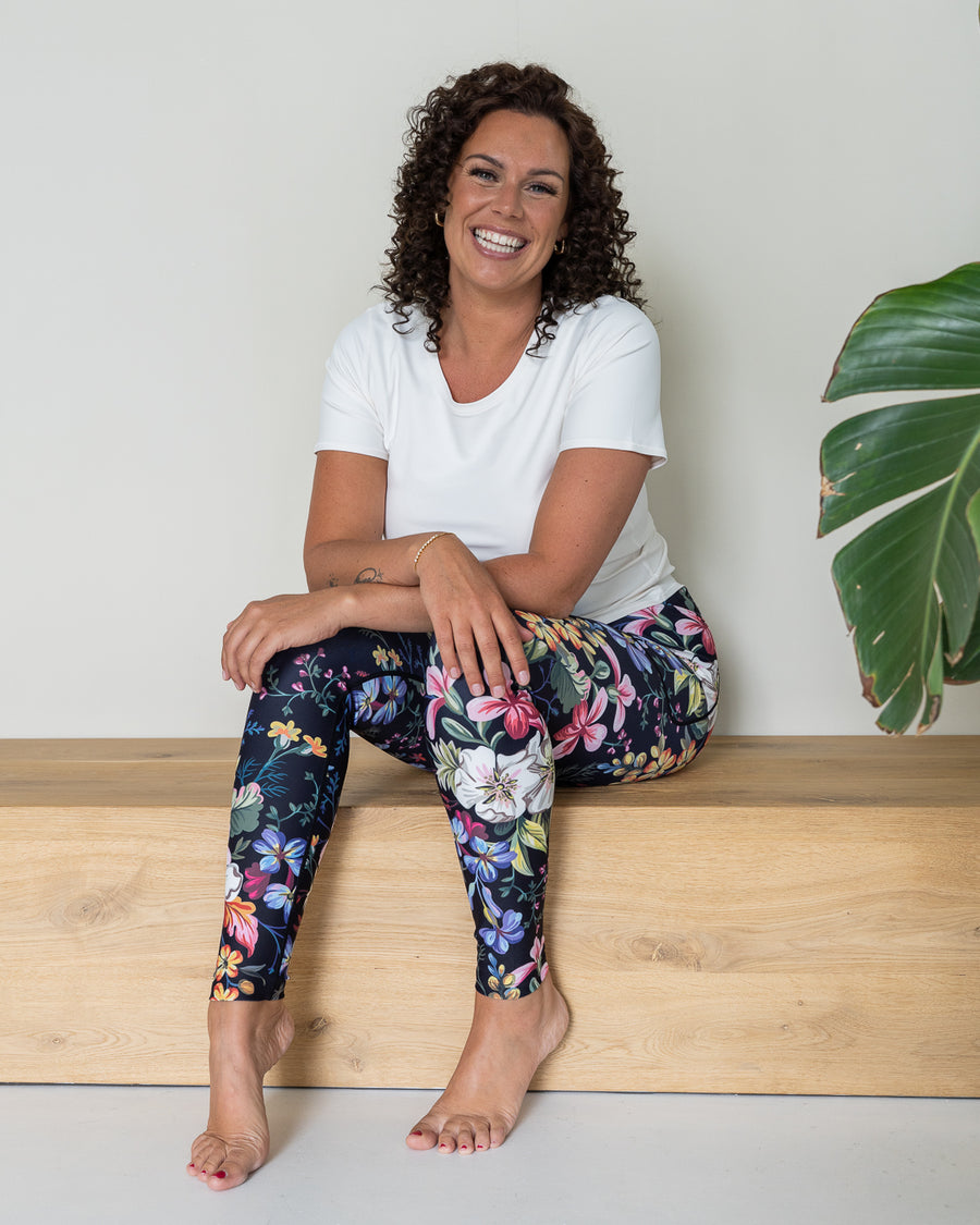 Leggings med høy midje i silkemykt, stretchy stoff – perfekt passform i alle størrelser. De har lommer, holder seg på plass når du beveger deg og er helt squat-proof.